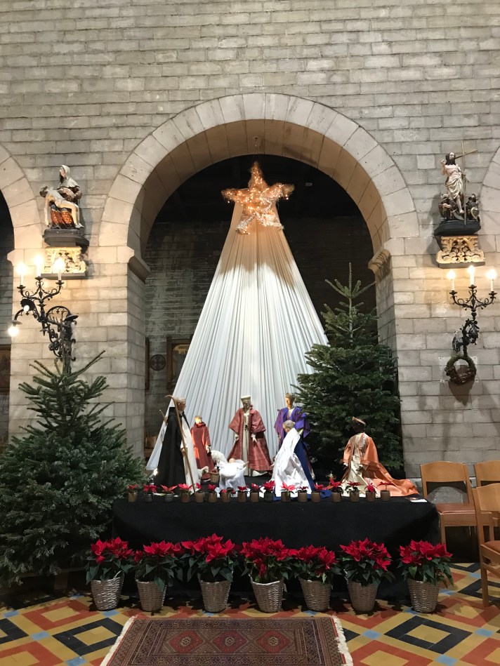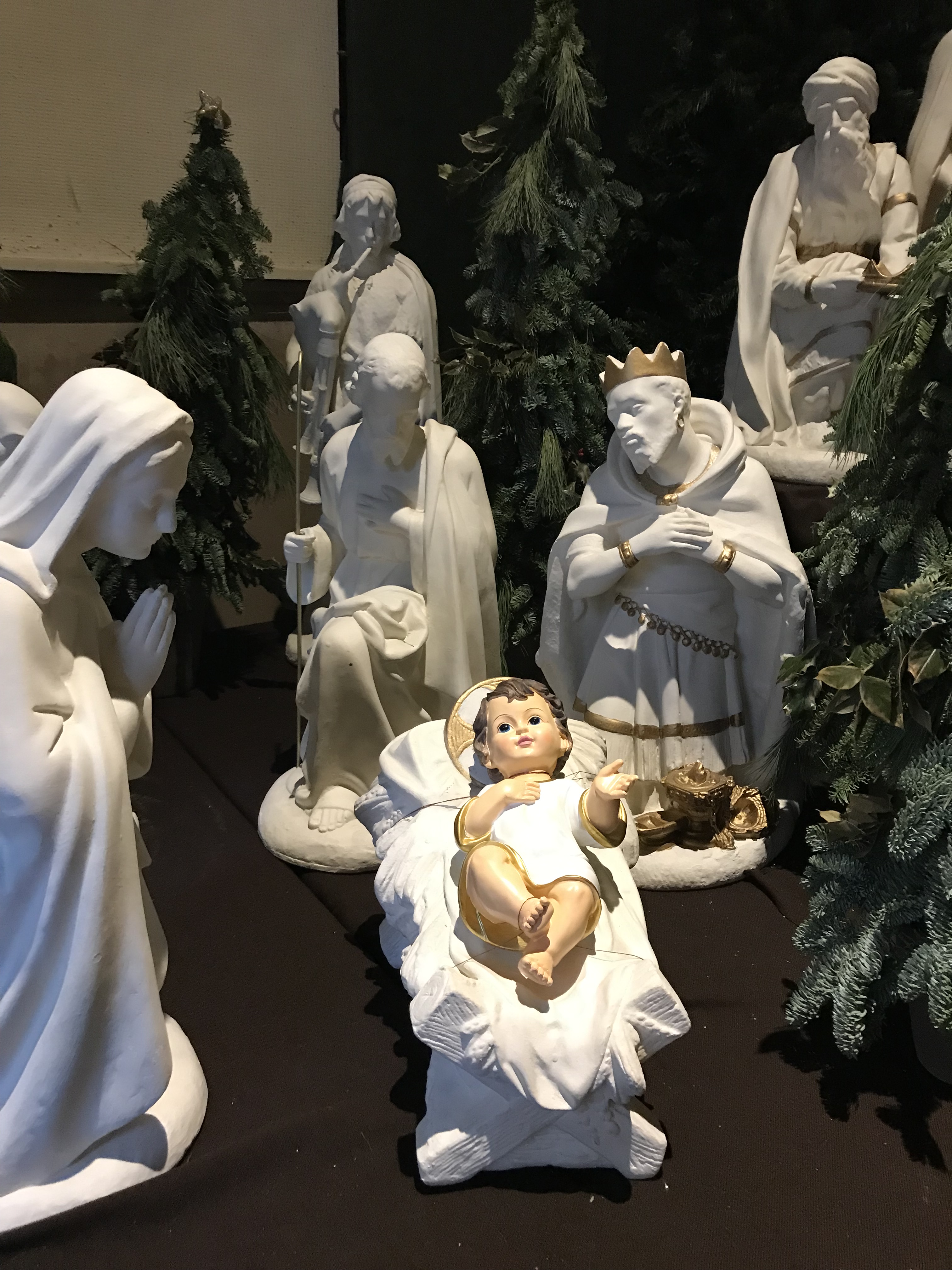 De kerststal was symbolisch geplaatst tussen de beelden van de Piëta (de dood) en de verrijzenis.