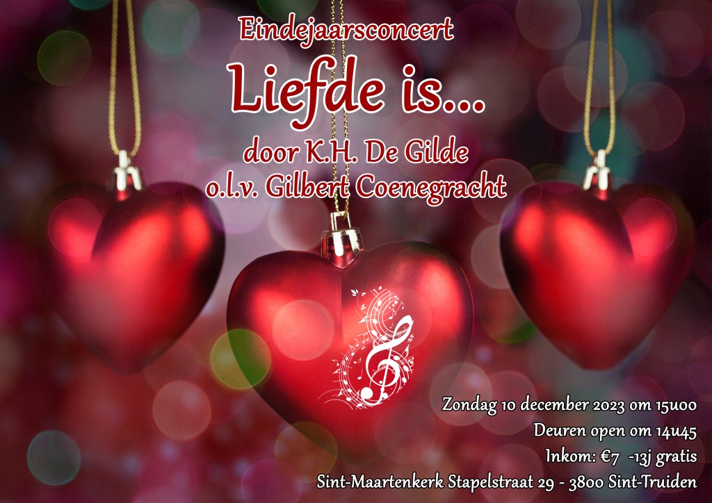 Op onze website www.khdegilde.be houden we je graag op de hoogte van ons programma. Ons eindejaarsconcert ‘Liefde is…’ zal plaatsvinden op zondag 10 december in de St. Martenkerk, welkom!