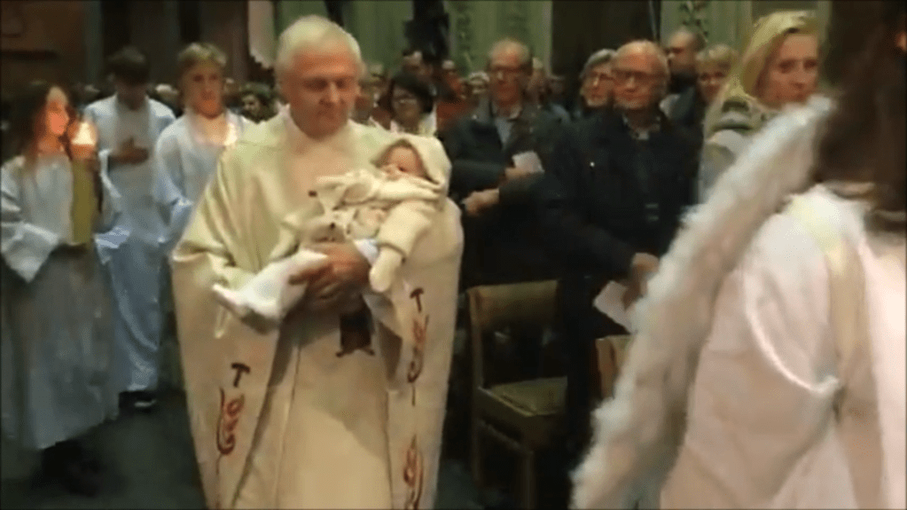 Minderbroeder Frans Cuypers met een levend kerstkind – 24.12.2018